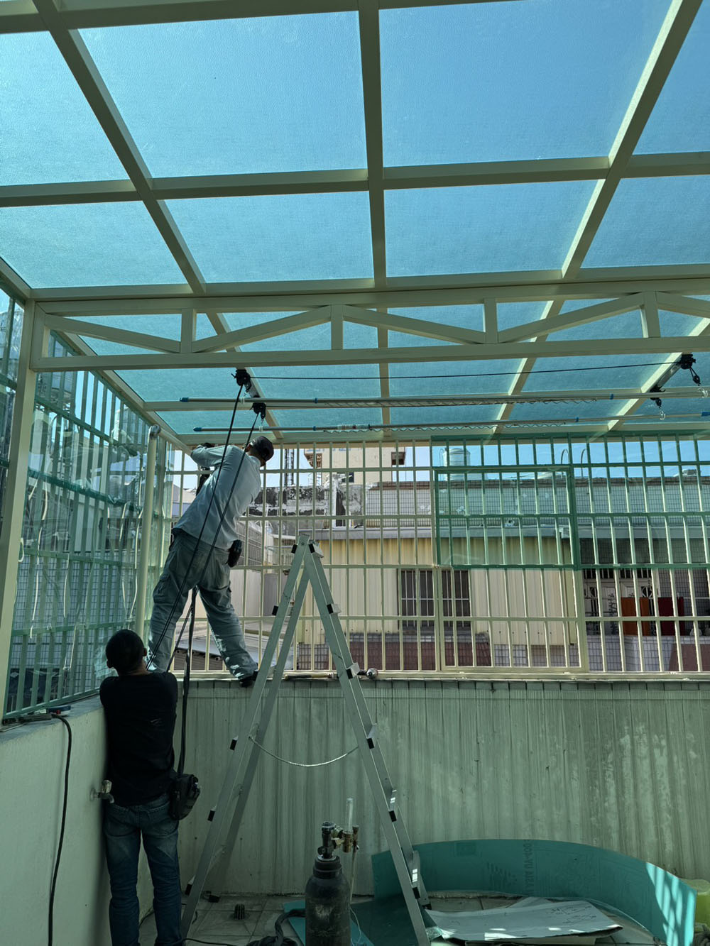 本案以整體空間評估為出發點,針對屋況與使用需求進行採光罩設計規劃,結合結構計算與施工細節控制,確保遮陽、防雨與採光效果兼具,讓空間在實用性與視覺上都達到良好平衡。